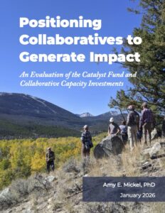 Evaluation findings underscore how, by investing in collaborative capacity, the Catalyst Fund helps grantees become the type of durable, adaptive, and effective collaboratives that we need if we are to address today’s complex and systems-level challenges. What is increasingly clear is that collaborative capacity investments are, in effect, long-term, highly strategic, and compounding investments in accelerating the delivery of on-the-ground conservation, stewardship, and restoration outcomes.