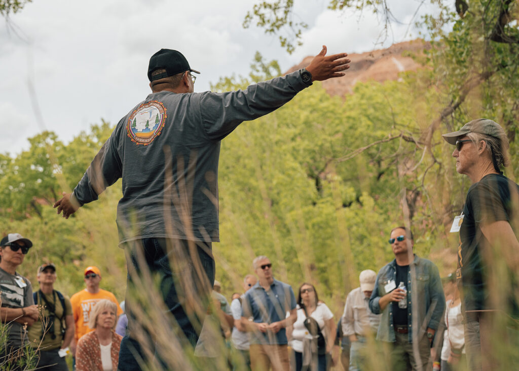 Staff from the Natural Resources Department at the Pueblo of Jemez host Catalyst Fund grantees and Network for Landscape Conservation leadership for a tour in May 2023, highlighting the work of the Tri-Pueblo Coalition, a 2022 Catalyst Fund grantee. Photo courtesy of Trees, Water & People.